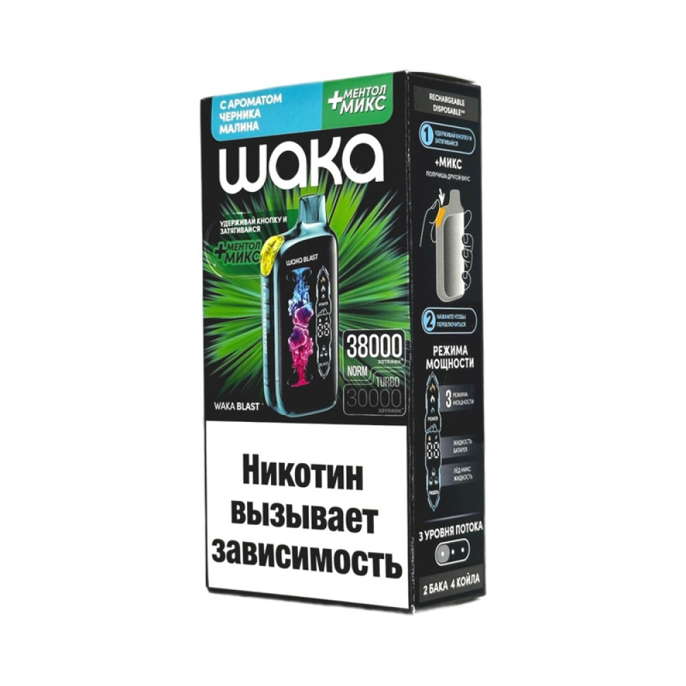 WAKA BLAST 38000 Hard - Черника малина + ментол микс - купить в Махачкале